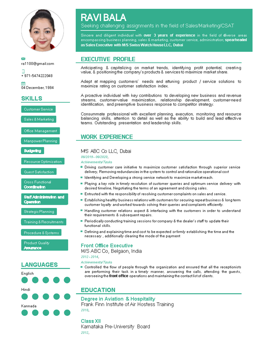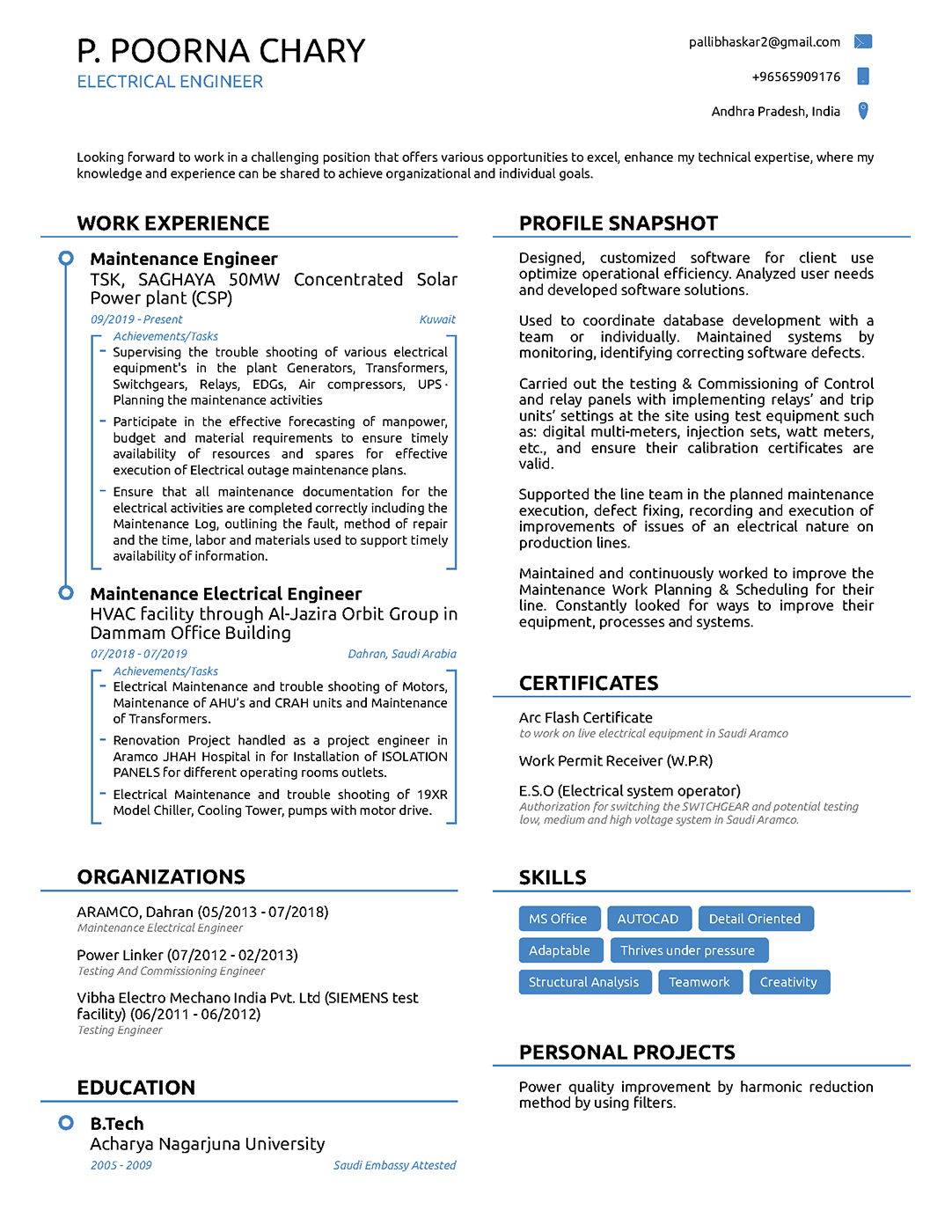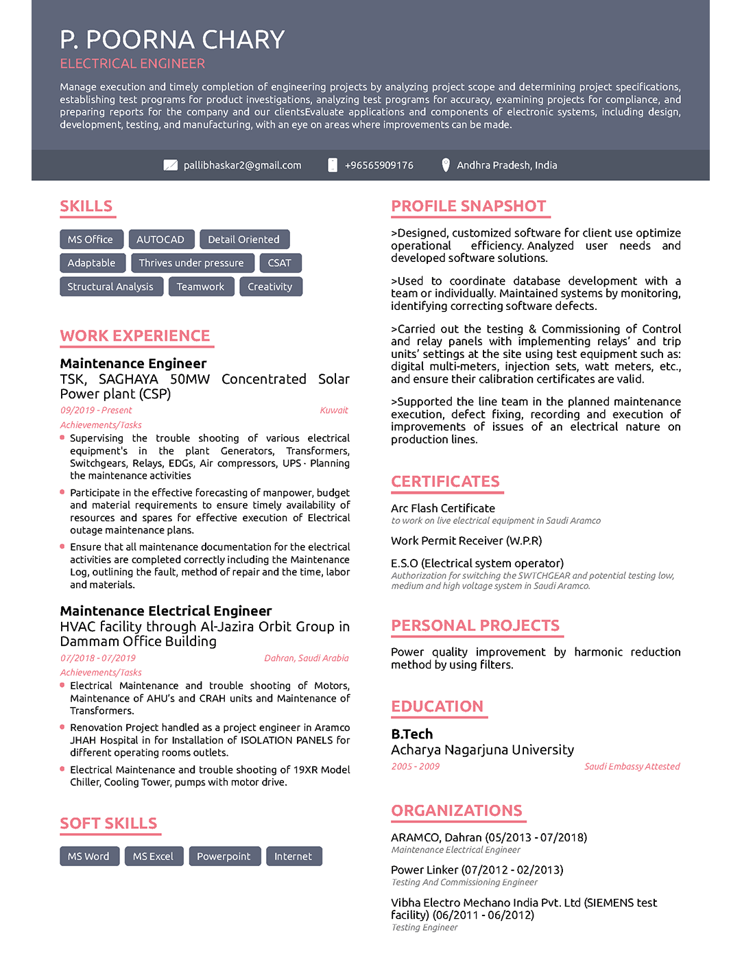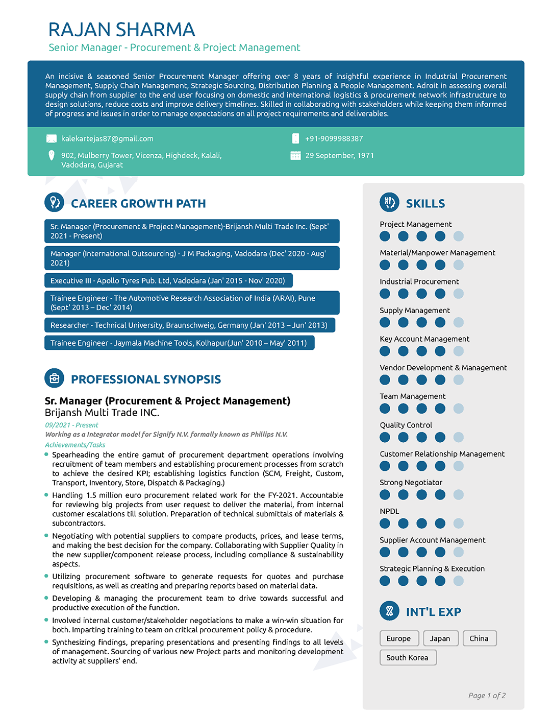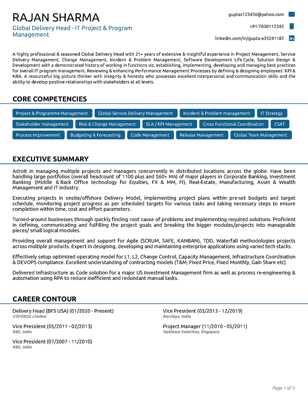 - Highlighted with high ranking Keywords so that Recruiters can easily find you